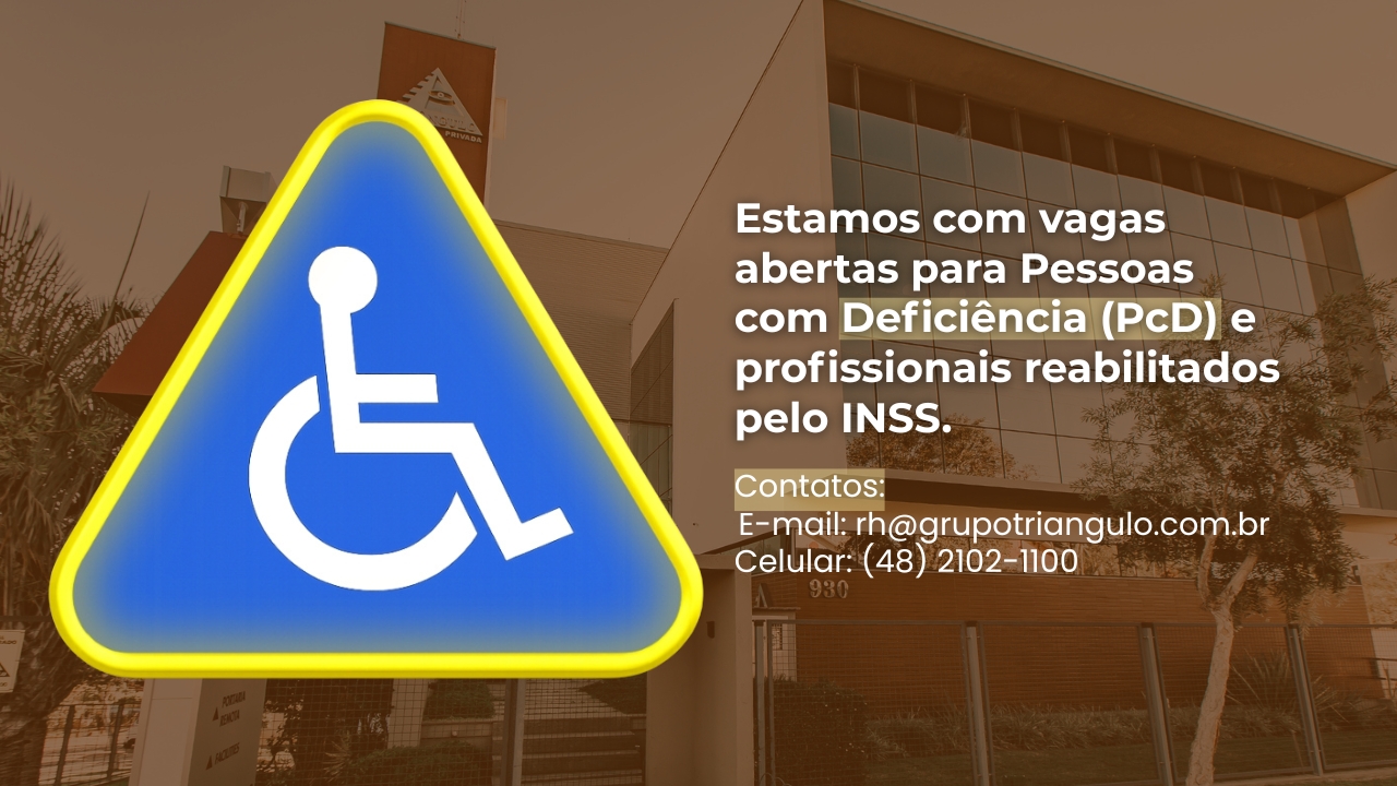 Estamos com vagas abertas para Pessoas com Deficiência (PcD) e profissionais reabilitados pelo INSS.